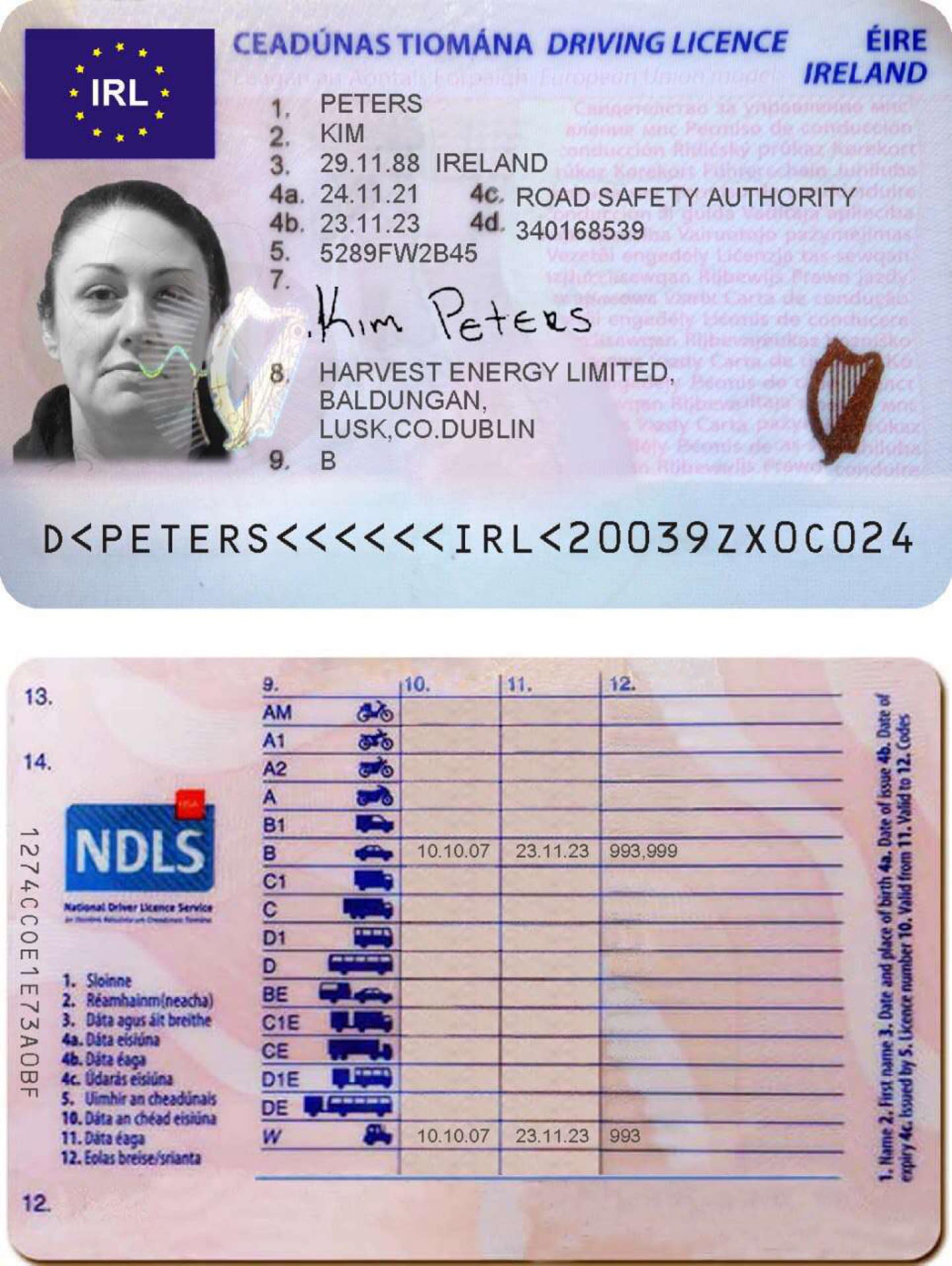 Buy Irish driver’s license produced with original quality online. Validation period 10 years. In Ireland, a driving license is the official document which authorizes its holder to operate various types of motor vehicle on roads to which the public have access. Since 29 October 2013, they are issued by the National Driver License Service (NDLS). Based on the European driving license standards, all the categories of license available and the physical license meet the 2006 EU standards.